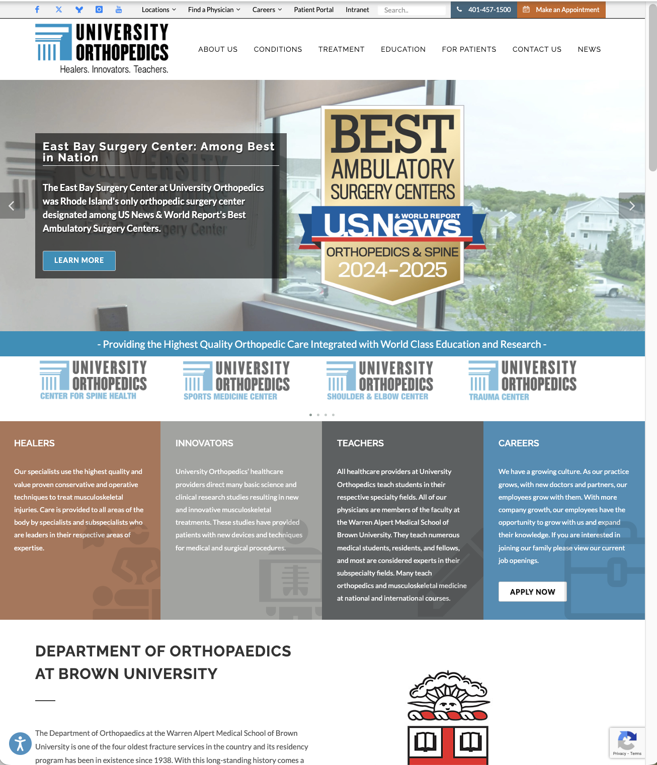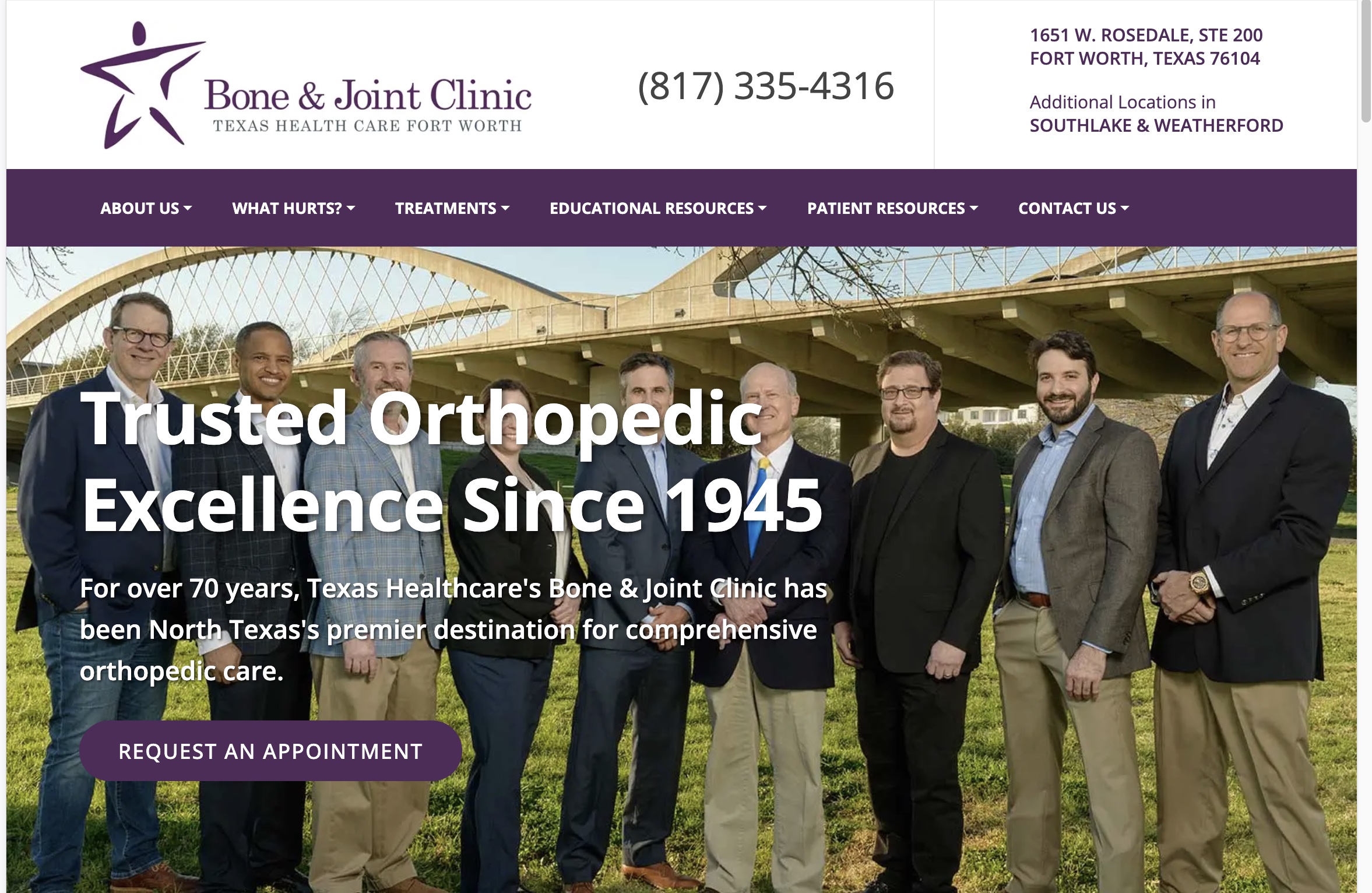 | Authority & Trust | Highlights board certification, subspecialties (sports medicine, spine, joint replacement), outcomes, and advanced technology. |